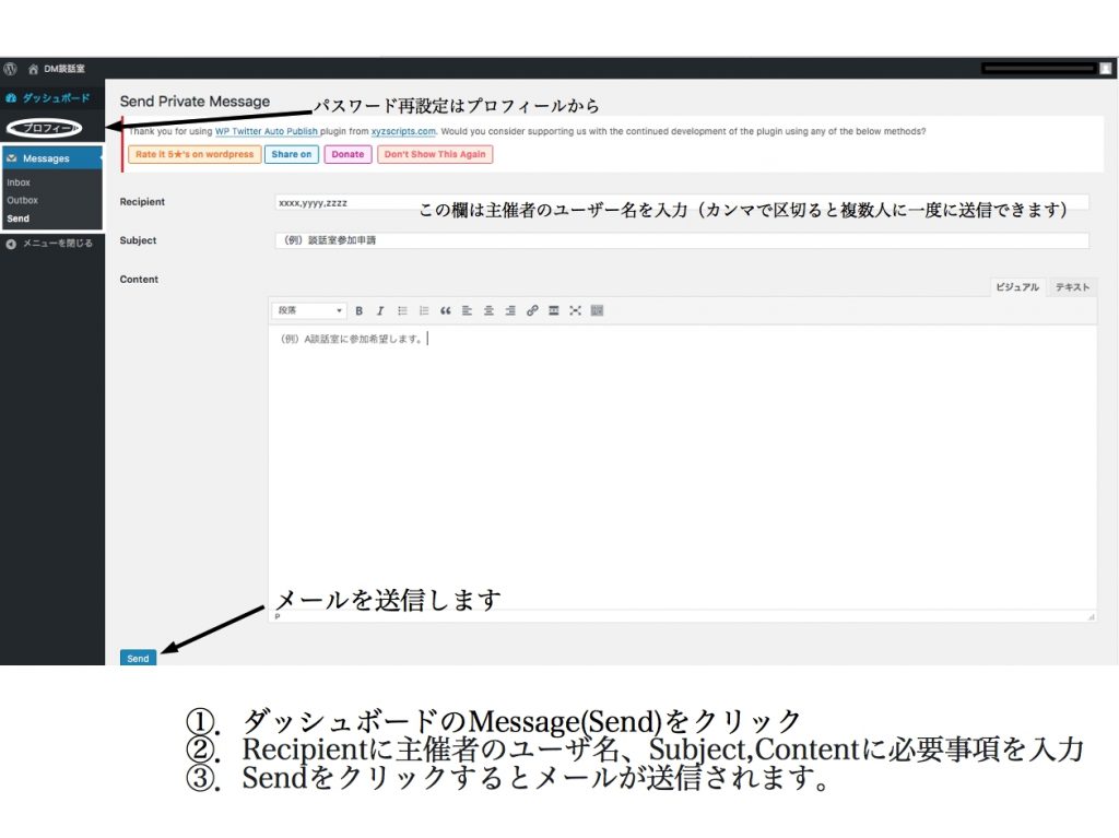 ユーザー登録後、メンバー間でメッセージのやり取りができます。管理者宛はd78152まで送信ください。
